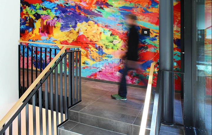 Kunst und Architektur, Müllerstr. 11, Innsbruck, 2015 Foto-Wandbilder: Fotodruck auf Glas, 2,5 x 17,6 m and 12 x 3,7 m, Architects Volker Flamm, Wolfgang Ohnmacht