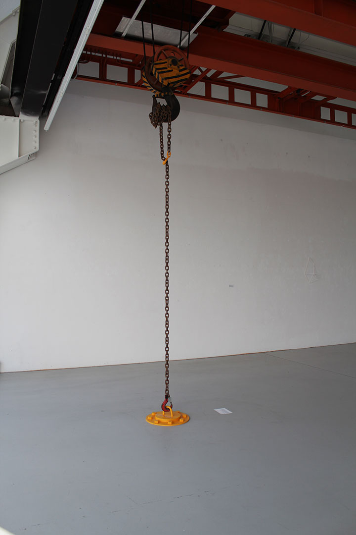 Installation 2012, Dimension ortsspezifisch, Stahlteile, Schild mit der Aufschrift: