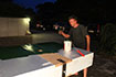 Auf einem schwimmenden Ponton entstand aus Polystyrol die Konstruktion einer Kulisse, wie man sie für eine Filmproduktion bauen würde.