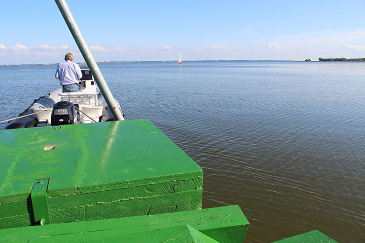 In the lagoon Saaler Bodden offshore Ahrenshoop in August 2014, a sculpture has been moored for one week – close enough at the haven of Althagen for details to be visible to the naked eye, far enough for swimmers to pose a challenge.